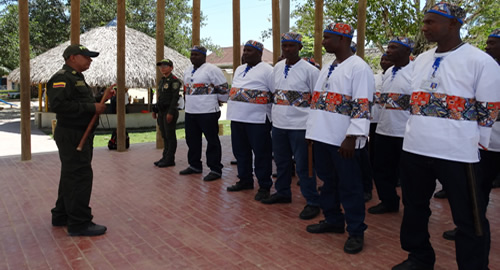 San Basilio de Palenque es una comunidad fundada por los esclavizados que se fugaron y se refugiaron en los palenques de la costa norte de Colombia desde el siglo XV. Desde su génesis y con el liderazgo de Benkos Biho se inicia un sin número de conquistas para despojarse del yugo español y poder originarse a través del tiempo como comunidad étnica establecida, fundada en deberes y derechos humanos. En este sentido la Policía Nacional viene llevando a cabo en este corregimiento programas de participación ciudadana tales como Frentes de Seguridad Local, Escuelas de Seguridad Ciudadana y Policía Cívica Juvenil que buscan brindar el apoyo necesario en el manejo de la educación y sensibilización en seguridad para mantener la convivencia pacífica en esa localidad; animando de esta manera a sus integrantes a resurgir bajo el liderazgo de uniformados, la bien llamada "Guardia Cimarrona", conformada por 30 adultos mayores que en forma comprometida, responsable y con alto sentido de pertenencia prestan un servicio de apoyo a la seguridad de su corregimiento en coordinación con los uniformados de la Estación de Policía Malagana.Dentro de las labores que llevan a cabo, se enumeran los patrullajes en horas diurnas y nocturnas por las calles de Palenque, con la finalidad de prevenir el delito y educar al ciudadano en materia cívica.Sus funciones también son puestas en práctica al momento de capturar a personas que quebrantan la tranquilidad pública y las colocan a disposición de la Policía Nacional quienes inmediatamente acuden al llamado de este grupo de valientes que imponen orden y conciencia en su comunidad. "Estamos muy animados de trabajar por el bienestar y la seguridad de nuestra comunidad, ya que gracias a este programa que viene siendo impulsado por la Policía en nuestra región, hemos podido rescatar muchos valores que se venían perdiendo en nuestra población como lo es el respeto a los demás, el amor propio por nuestras costumbres y esto también genera seguridad entre los habitantes de San Basilio de Palenque" manifestó: Segundo Cáceres, líder cívico de la comunidad Palenquera quien también hace parte de la Escuela de Seguridad Ciudadana. Los guardias fueron capacitados en normas jurídicas, defensa personal y técnicas especiales de conducción a personas capturadas que infringen la ley.