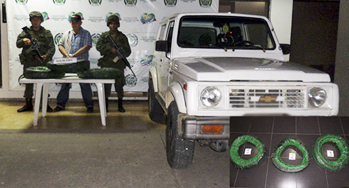 Las acciones de control efectuadas en los diferentes ejes viales por nuestros uniformados de la compañía de Antinarcóticos permitieron dar con la captura de alias "el Miller" de 50 años de edad, presunto integrante de la red de apoyo al terrorismo del Frente 15 de las Farc, cuando se movilizaba en un vehículo de servicio particular, en el cual transportaba 71 kilos y 710 gramos de base de coca ocultos en las llantas del automotor.EL operativo se llevó a cabo en la vía Florencia-Morelia, cuando este hombre intento evadir un puesto.El vehículo fue interceptado realizando un registro minucioso al vehículo hallando ocultos entre las llantas paquetes que en su interior contenían base de coca, avaluada en $143'420.000.El capturado con el elemento material de prueba fueron dejados a disposición de la autoridad competente por el delito de tráfico, fabricación y porte de estupefacientes (Art. 376 C.P).