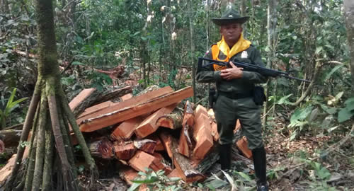 En desarrollo de labores de contra la explotación ilícita de los recursos forestales, el grupo de Carabineros en coordinación con funcionarios de Cormacarena, realizaron en zona rural de la Vereda Nare, una intervención a un sitio que venía siendo objeto de la tala indiscriminada de árboles, sin autorización de esta autoridad ambiental competente.Al llegar al lugar, fue encontrado un perímetro talado y se halló un centro de acopio de la madera talada; en este mismo sitio, se encontraron 160 metros cúbicos de madera tipo cachicamo, laurel y cedro, avaluados en 600 mil pesos.