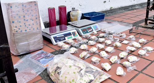 Las acciones Policiales se desarrollaron mediante la ejecución de tres órdenes de registro y allanamiento simultáneos en la vereda el Jordán de esta localidad, donde se logró la incautación de dos máquinas industriales para el empaque de sustancias estupefacientes "papeletas de bazuco", tres mil setecientas dosis de bazuco listas para ser distribuidas, dos basculas, siete paquetes de papel adhesivo con figuras geométricas y demás elementos utilizados para el procesamiento.Este resultado afecta considerablemente el accionar delictivo y las finanzas de la organización delincuencial denominada "cordillera", dedicada al tráfico de narcóticos; con la incautación de estas máquinas y el estupefaciente se saca de circulación el más grande de los centros de acopio y distribución de bazuco, el cual se comercializa mediante la modalidad de expendio callejero en varios sectores de la ciudad de Pereira, logrando con ello que las dosis caigan en manos de los consumidores, generando así una mejor percepción de seguridad ciudadana a los habitantes de esta jurisdicción.El principal fenómeno de afectación a la seguridad ciudadana, se deriva del tráfico local de estupefacientes; actividad delictiva que se encuentra monopolizada por la red delincuencial enunciada anteriormente, siendo la estructura que posee el monopolio de la comercialización frente al mercado interno que se presenta en los municipios de Pereira, Dosquebradas y la Virginia.Las maquinas incautadas tienen una capacidad de sellar treinta mil papeletas diarias de bazuco, dejando ganancias diarias de sesenta millones de pesos los cuales financiaban la organización, estas maquinas venían siendo utilizadas desde sus inicios como organización delincuencial denominada Cordillera desde el año 2006.Continuaremos ejecutando planes operativos que garanticen la seguridad de todos los Pereiranos, invitando a la comunidad a trabajar mancomunadamente en la construcción de sociedades pacíficas y en paz.