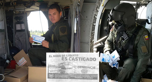 El Escuadron Movil de Carabineros, adscrito a la Dirección de Carabineros y Seguridad Rural, en coordinación con la Fuerza Aérea realizaron una campaña de difusión contra el abigeato, arrojando cerca de 5.000 volantes alusivos a la difusión de la línea de Acción Ganadera.Como ofensiva para la prevención de este delito, desde un helicóptero BLACK HAWK de la Fuerza Aérea Grupo de Casanare, se realizó un sobrevuelo por los municipios de Yopal, Aguazul, Mani y Tauramena, donde también desde la aeronove se difundió a traves de un altoparlante, el número de la línea de Acción Ganadera, tanto en el casco urbano como en el área rural, incentivando la denuncia de esta clase de delitos.