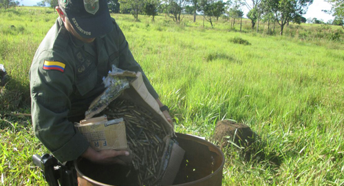 En desarrollo a la Estrategia Institucional de Acción Integral Contra el Terrorismo, bajo la supervisión de la autoridad competente, en la Vereda El Hobo del municipio de San Juan de Arama, se realizó la destrucción controlada de gran cantidad de material de guerra y explosivo, incautado durante diferentes labores contra los grupos armados ilegales de bandas criminales y farc, que delinquen en la región del Ariari.Sacamos de la circulación terrorista y criminal 3 granadas de fragmentación, 11.535 cartuchos de diferentes calibres, 1000 fulminantes, 8000 perdigones y 1 proveedor para fusil, los cuales fueron neutralizados por técnicos de la unidad Antiexplosivos y Antiterrorista de la SIJIN.Para este procedimiento, nuestros uniformados implementaron cordón detonante, mecha de seguridad, detonadores ineléctricos y Acpm, acatando los protocolos de seguridad para la post explosión realizada en campo abierto en una finca, evitando así que, la onda explosiva afectara a la población o generara daños a infraestructuras.
