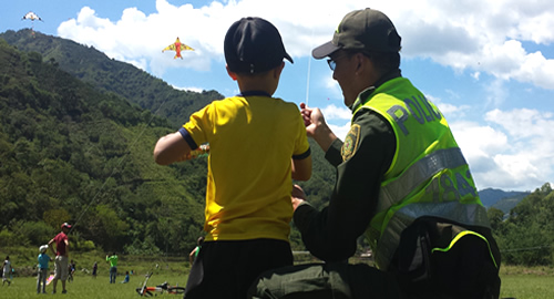 El festival de cometas denominado "En Salgar ponemos a volar tus sueños", tuvo lugar en la cancha de fútbol con el apoyo de Indeportes y la Secretaria de Cultura. Durante la jornada se realizaron diferentes diseños utilizando material de reciclaje, como gesto de corresponsabilidad, amor por el medio ambiente, solidaridad y unión familiar.En el evento participaron alrededor de 250 jóvenes, 50 padres de familia y comerciantes que se unieron a la estrategia comunitaria para llevarles un obsequio a al acometa más innovadora.La Policía Nacional continúa su compromiso con la niñez colombiana.