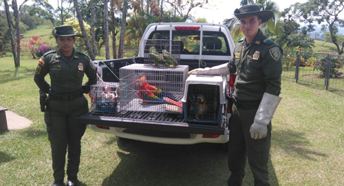 Con el fin de prevenir la explotación y el tráfico ilegal de la flora y fauna, en las últimas horas, nuestros uniformados realizaron operativos en la vereda la floresta del Municipio de Chinchiná, con el fin de conservar la preservación del medio ambiente.Durante los controles se incautaron de tres guacamayas bandera, dos guacamayas azul amarillas, dos loras frente amarillas, por no cumplir con los requisitos de la ley 99 de 1993, ley de la protección del medio ambiente.Estas especies fueron entregadas de manera Voluntaria por sus dueños, y tienen un valor ecológico de $ 34´794.900 pesos, las cuales fueron dejadas para su protección y rehabilitación a cargo de Corpocaldas Hacemos un llamado a la ciudadanía para que entregue las especies silvestres capturadas, el tráfico de animales representa vía para extinción de especies; nuestros uniformados adscritos a la Policía Ambiental seguirá realizando campañas e incautaciones, para contribuir a mejorar y mantener el medio ambiente, al igual agradece a los ciudadanos que con sus buenas acciones permiten el regreso de estos animales a su hábitat natural.
