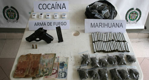 Mediante labores de registro y allanamiento en el sector del barrio Libertadores del municipio de la Virginia Risaralda, la Policía logra capturar una mujer de 56 años que se dedicaba a la venta y tráfico de estupefacientes, para lo cual vinculaba a su hijo de 16 años quien fue aprehendido durante la diligencia de registro y allanamiento.Durante el registro y allanamiento se incautaron 450 dosis de Marihuana, 49 dosis de Cocaína, un Arma de fuego calibre 7.65 milímetros y un proveedor con munición.La mujer capturada fue dejada a disposición de la autoridad competente por los delitos de tráfico, fabricación o porte de estupefacientes y fabricación, tráfico y porte de armas de fuego o municiones, donde le dictaron medida de aseguramiento en centro penitenciario de mujeres, la badea. Mientras que el menor aprehendido fue llevado ante la fiscalía 13 Seccional de Responsabilidad Penal para Adolescentes y fue enviado a un Centro de Reeducación de Menores, Marceliano Ossa.