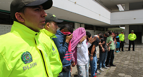 Cali y su área metropolitana respiran con mayor tranquilidad. La Policía Nacional neutralizó los principales factores de perturbación contra la seguridad ciudadana, responsables de más de 60% de la criminalidad, concentrada en homicidios, extorsiones, venta de droga al menudeo y desplazamiento forzado.Las acciones de policía judicial dispuestas en el plan de choque contra el delito y la coordinación con la Fiscalía General, permitieron desarticular tres estructuras, criminales, capturar a 41 delincuentes (39 con orden judicial - dos notificados en centros carcelarios) y cumplir con 40 allanamientos que dejaron 4 armas de fuego decomisadas, junto a gran cantidad de estupefacientes (20.700 dosis) y cerca de 20 millones de pesos, producto del microtráfico.La Dirección de Investigación Criminal – DIJIN puso fin a la tenebrosa banda "Los Ácidos". Fueron detenidos 19 de sus integrantes, entre ellos, sicarios, expendedores, cobradores de extorsiones y al parecer su principal cabecilla, alias "H".El hombre de 27 años, asumió la jefatura de la organización en 2011 y desde entonces incursionó violentamente en 12 barrios de Cali, en las comunas 4 y 6, con el fin de controlar las casas de vicio y la venta de droga en diferentes zonas de la ciudad (con injerencia en 13 parques). Según reportes de inteligencia, esa arremetida a sangre y fuego cobró la vida de 158 personas en los dos últimos años, entiéndase delincuentes de otras organizaciones, jóvenes que intentaron salir de la banda o ciudadanos que no accedieron a amenazas.Alias "H" fue capturado en una vivienda del sector Comfenalco, allí se escondía en armario donde lo ubicaron los uniformados junto a una ametralladora y una máscara que usaba para cubrir su rostro mientras ejecutaba los asesinatos, así evitaba ser registrado por las cámaras de seguridad y dificultaba a las autoridades su identificación.El actuar delincuencial de Villa Posso, fue financiado en los últimos años por la banda criminal "Los Rastrojos", que en varias oportunidades pagó por su grupo de sicarios para realizar los denominados ajustes de cuentas, en municipios de Valle del Cauca.Contra alias "H" hay varias horas de grabación de sus conversaciones telefónicas, controles técnicos avalados judicialmente, en los que habla con los subalternos sobre la necesidad de vincular menores a la organización, para instrumentalizarlos en el cobro de extorsiones y facilitar el camuflaje de droga, ante el asedio permanente de la Policía Nacional.Dentro del plan choque, la Metropolitana de Cali adelantó una ofensiva contra las estructuras del "Realengo" y "Los Primos", y detuvo a 22 delincuentes dedicados al homicidio selectivo, distribución de estupefacientes en áreas comerciales y al cobro de extorsiones. Seguimientos y vigilancias contra "Los Primos", facilitaron la identificación del engranaje delincuencial. Expendedores ubicados en vía pública, entre ventas ambulantes en el mercado campesino Plaza Santa Elena de la Comuna 10, para camuflarse como compradores de verduras e impedir ser detenidos en flagrancia por los Policías del cuadrante.Este grupo delincuencial es responsable de un alto porcentaje en el tráfico de estupefacientes en menores cantidades, con un promedio de venta de 15 mil dosis diarias, entre bazuco y marihuana, que representaban ingresos ilícitos de 450 millones de pesos mensuales aproximadamente.Todos los integrantes de la banda "Los primos" tienen entre 3 y 6 anotaciones judiciales por tráfico y fabricación de drogas, pero llama la atención el caso de alias "El Mono", quien presenta 41 registros en sus antecedentes judiciales.Frente a la estructura del realengo se resalta la actividad beligerante de alias "Banguero" y "Goku" quienes hacen outsourcing con organizaciones criminales.