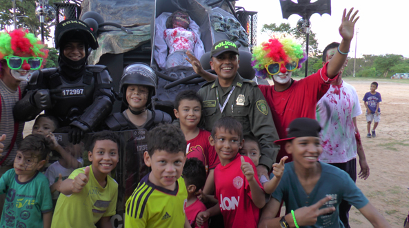 La actividad es liderada por uniformados adscritos al Grupo de Prevención y Educación Ciudadana e Infancia y Adolescencia, quienes se desplazaron a las diferentes comunas de Barrancabermeja, con recreacioncitas, payasos, pinta caritas, inflables, música y concurso de disfraces. Por su parte, el Escuadrón Móvil Antidisturbios (Esmad) en desarrollo de las lúdicas brindó recomendaciones de seguridad a padres de familia: Por ningún motivo permita que los niños jueguen con pólvora.Verifique la fecha de vencimiento de los dulcesInsista a los niños para que no reciban dulces de personas desconocidas, ni con envoltura rota.Si tiene niños pequeños, procure hacer el recorrido durante el día.Muéstrele a sus hijos a dónde deben ir en caso de perderse. Enséñeles a reconocer los diferentes uniformes utilizados por las autoridades y entidades de servicio.Enseñar a los niños, niñas y adolescentes a identificar los números de emergencia de la Policía Nacional 123. No permita que los niños, niñas y adolescentes salgan de sus casas sin la supervisión de un adulto responsable.La Policía garantiza la seguridad y tranquilidad para que esta celebración este llena de sonrisas.