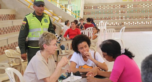 La Policía Metropolitana de Cartagena de Indias ofrece seguridad y brinda acompañamiento ante la jornada de salud que adelanta Fundación Norteamericana "Puentes de Esperanza", desde la cual buscan mejorar la calidad de vida de los habitantes de barrios necesitados  y generar mayor  integración con la comunidad. Algunos de los sectores de la ciudad son barrios Arroz Barato, Fredonia, Punta Canoa y Canapote.Es de anotar que desde el 2.005 esta Fundación viene realizando estas labores interrumpidamente con el apoyo de la Policía Nacional, donde por esta época año tras año llega con un equipo de especialistas y medicamentos a la ciudad, atendiendo durante cuatro días en los barrios mencionados y en algunas clínicas y hospitales que se encuentran en alianza para poder intervenir quirúrgicamente al personal que lo requiere.Son más de 5 mil personas entre niños, adolescentes y adulto mayor, quienes han sido atendidos por los médicos y especialistas quienes desde el norte del continente americano vienen a entregar su profesionalismo y solidaridad, dejando en sus visitas además los medicamentos, cirugía y en algunos casos lentes para aquellos ciudadanos que presenten problemas de visión  sin ningún costo.Es de resaltar que los integrantes de la Policía Metropolitana de Cartagena de Indias, son los traductores entre pacientes y médicos, además dan recomendaciones de seguridad y hacen trabajo con la comunidad en busca de un acercamiento por una mejor convivencia.​