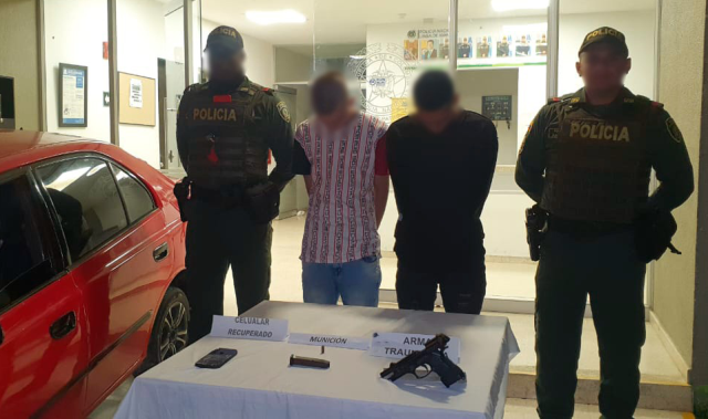 Por otro lado, en el sector de la avenida Ferrocarril de la capital risaraldense, son capturados dos hombres de 21 y 34 años, entre ellos uno de nacionalidad extranjera, quienes a través de actividades de registro a persona desarrolladas por integrantes de la estación El Remanso y Pereira, se les encuentra en su poder dos armas de fuego, tipo revólver, calibre 32, sin permiso para porte o tenencia.
