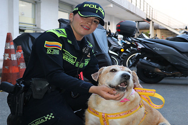 Policía Nacional adopta a “Chela” tras el fallecimiento de su cuidador en Pereira