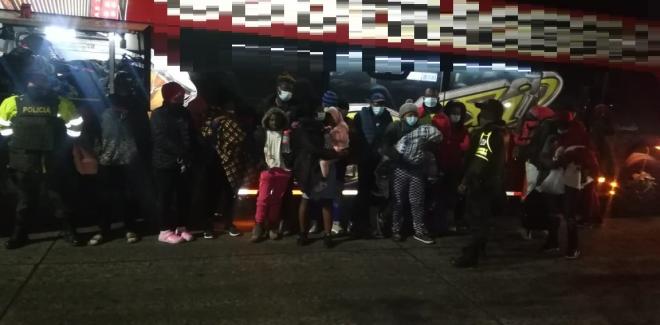 Dentro de las estrategias para la prevención de delitos que afecten la seguridad ciudadana, el Departamento de Policía Nariño mediante puesto de control en la vía Pasto – Mojarras, logra por intermedio de uniformados de la Seccional de Tránsito y Transporte (SETRA), la captura de tres personas que transportaban de manera ilegal a 59 ciudadanos de nacionalidad haitiana en un bus de servicio público.
