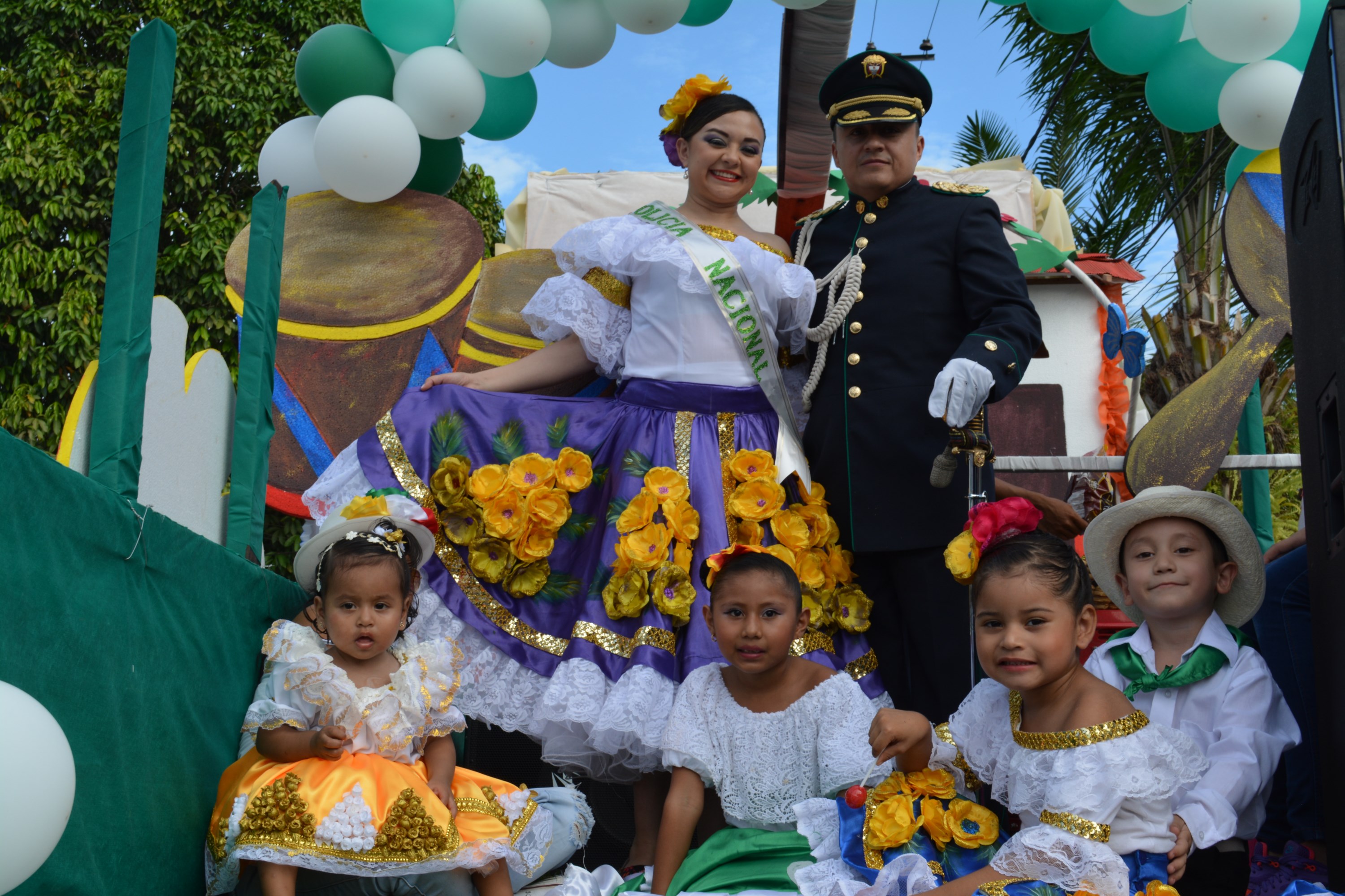 La Policía Nacional participó con su reina, la señorita Teniente Liliana Maritza Cabezas, su edecán el señor Teniente Coronel Edwin Pabón, quienes acompañados de un ramillete de niños y niñas, engalanaron la carroza elaborada por el señor patrullero Rubén Ramos con la ayuda de los auxiliares de policía y estudiantes de grados 10 y 11; la carroza estuvo escoltada por una comparsa de bailarines todos ellos profesionales de policía en todos sus grados, quienes a los largo de todo el recorrido no pararon de bailar y danzar a los ritmo del folclor colombiano.