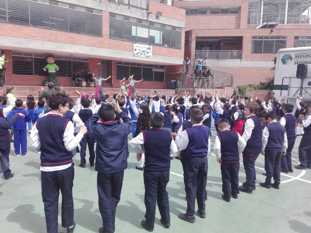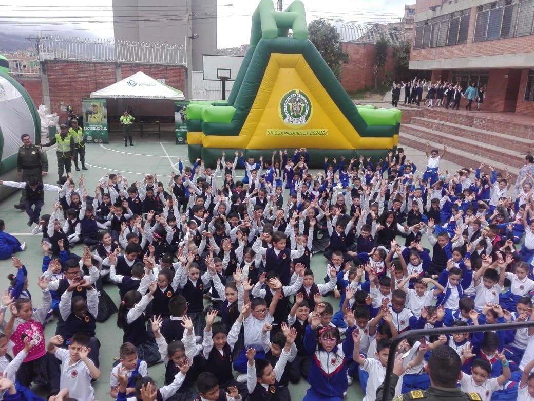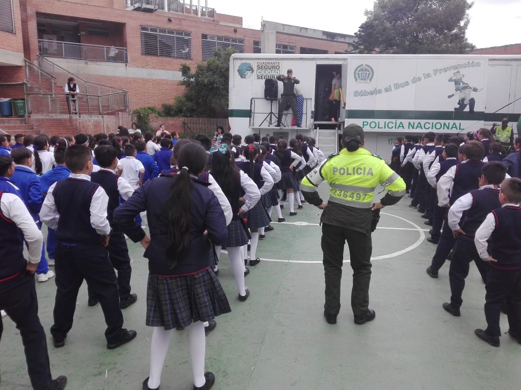 La policía Nacional por medio del Grupo de Vínculos y Relaciones estratégicas de la Oficina de Comunicaciones Estratégicas COEST de la Dirección General llevó su parque móvil y su grupo de recreación, previa coordinación con el grupo de prevención del COSEC 2 y el personal del grupo de prevención de la dirección de protección y servicios especiales y prevención seccional de transito de la Metropolitana de Bogotá, llegamos a este sector de la localidad de Ciudad Bolívar, donde realizamos la clausura del programa escolarizado en prevención de drogas y la violencia de la feria ciudadana.