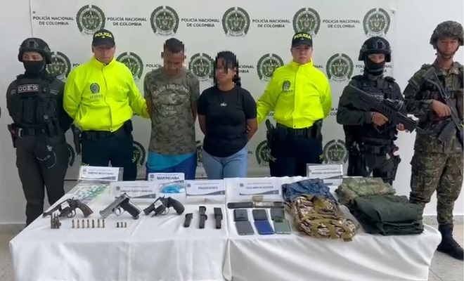 Los capturados, conocidos como “Deibys” y “Delvis”, serían los presuntos responsables de movilizar armas de fuego destinadas a actividades delictivas. Asimismo, la vivienda allanada habría funcionado como centro de almacenamiento y expendio de estupefacientes. Información suministrada por fuente humana indica que uno de los detenidos rendía cuentas al GAO Clan del Golfo, presuntamente desempeñándose como encargado logístico dentro de esta estructura criminal.