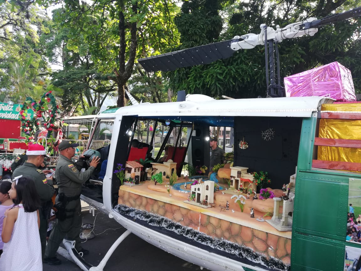 Este año como novedad, tuvimos la visita del helicóptero pesebre, el cual fue acondicionado por funcionarios de la Escuela de Aviación Policial, causando gran sensación entre los habitantes de la Capital musical de Colombia y demás municipios; demostrando de esta manera, que podemos llevar seguridad por tierra y aire sin olvidarnos del espíritu navideño.