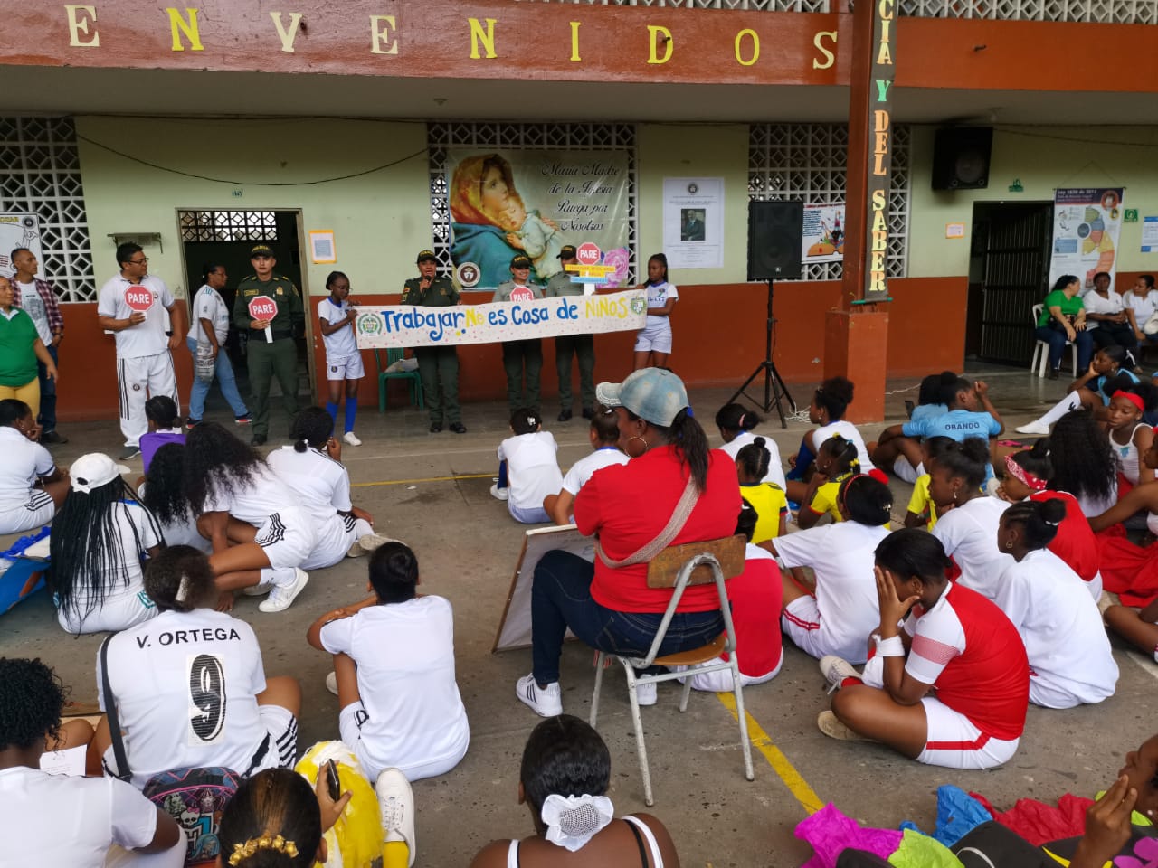 Es por ello que la Dirección de Protección y Servicios Especiales a través del grupo de Protección a la Infancia y Adolescencia del municipio de San Andrés de Tumaco en el Departamento de Nariño al sur de Colombia, hace presencia en la institución educativa Santa Teresita, con el fin de sensibilizar a los niños, niñas y adolescentes sobre los riesgos y problemáticas que enfrenta el país en temas de trabajo infantil, al igual que los daños físicos y psicológicos que esta actividad puede generar en la niñez colombiana.